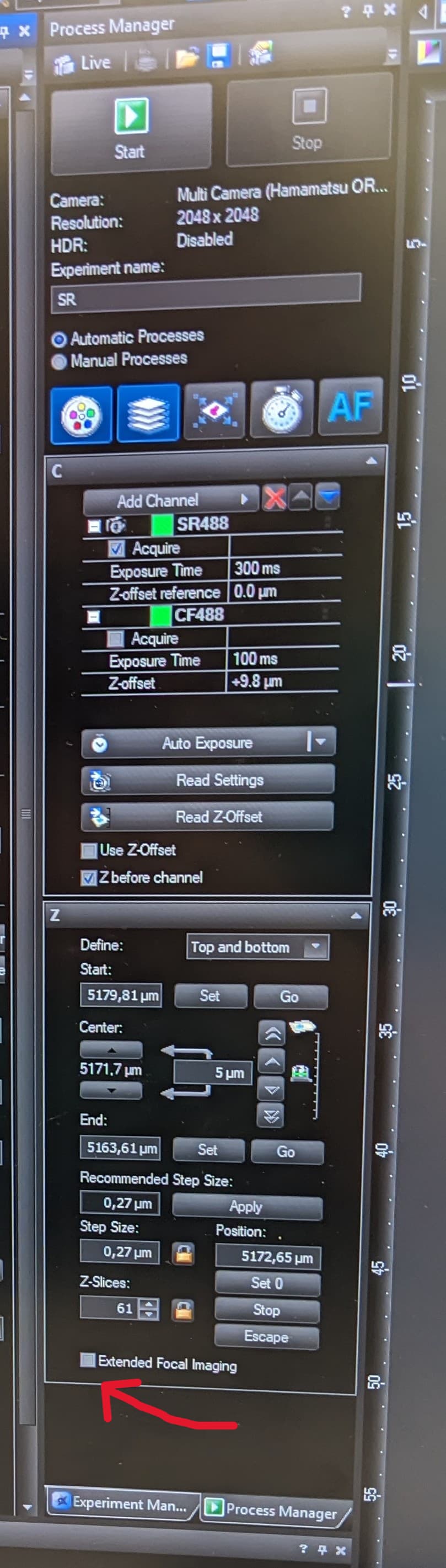 The system we have is Olympus SpinSR10 with CellSens, but I assume this option exists also on other microscopes.